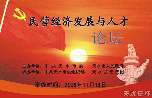 ¡¡¡¡ÎªÁË»ý¼«ÊµÊ©È˲ÅÇ¿ÊÐÕ½ÂÔ£¬¼Ó¿ìÎÒÊÐÃñÓª¾¼Ã·¢Õ¹²½·¥£¬´Ù½øÈ«Êиĸ↑·ÅºÍ¾¼ÃÉç»áÓÖºÃÓÖ¿ì·¢Õ¹£¬ÌìË®ÊÐί¡¢ÊÐÕþ¸®¾ö¶¨ÓÚ11ÔÂ18ÈÕ¾Ù°ì¡°ÃñÓª¾¼Ã·¢Õ¹ÓëÈ˲š±ÂÛ̳¡£ÕâÊÇÎÒÊй᳹Âäʵ¿ÆÑ§·¢Õ¹¹Û£¬Ó¦¶ÔÈ«Çò½ðÈÚΣ»úºÍ¹úÄÚ¾¼ÃµÄÑϾþÐÎÊÆ£¬ÇÀ×¥½¨Éè¡°¹ØÖСªÌìË®¾¼ÃÇø¡±µÄÀúÊ·»úÓö£¬Í³³ïÍÆ½ø³ÇÏçе÷·¢Õ¹µÄÒ»ÏîÖØÒª¾Ù´ë¡£