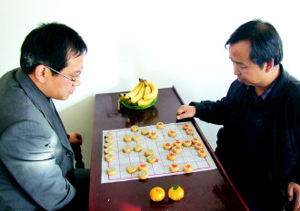 11月28日,天水日报社与天水移动通信分公司举行联谊活动,天水移动通信分公司总经理何文革与报社领导就双方加强交流沟通、实现合作共赢进行了座谈。当日,天水日报社与天水移动通信分公司还进行了象棋、乒乓球友谊赛,图为双方队员正在进行象棋比赛。 记者 马哲 摄