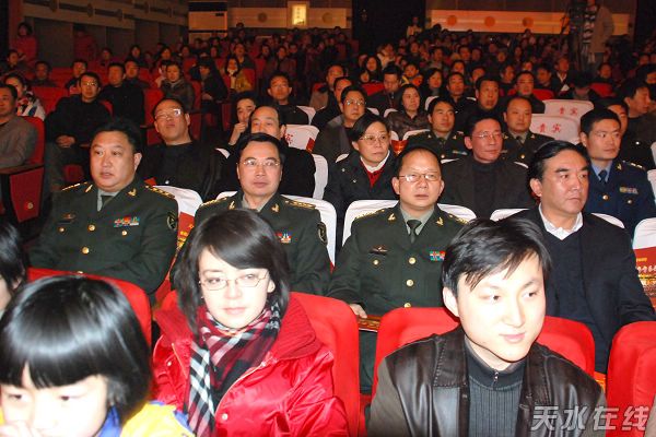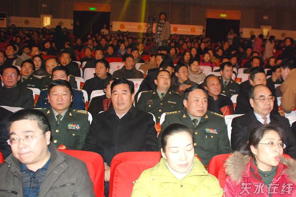 天水市领导张景辉、冯沙驼、李美华、张怀仁、郑黎、韩一兵、申积来、马锐、黄郁、郭奇若、赵卫东、王钦锡、安志宏以及驻军领导、市直机关、民主党派、社会各界人士等900多人观看了新年音乐晚会。