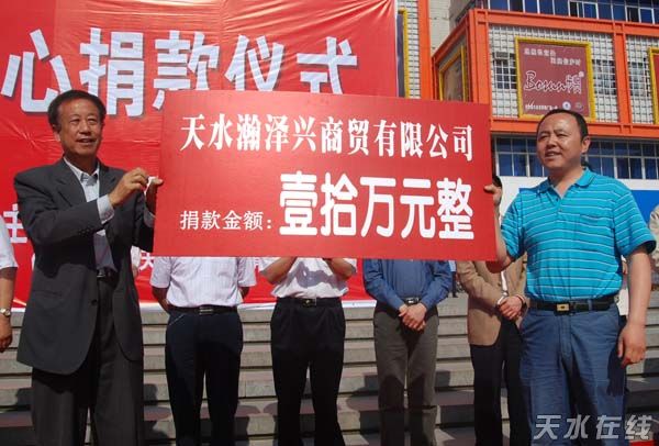 “5·12”汶川大地震发生后,天水市非公经济人士奔赴抗震救灾第一线,捐钱捐物,支持灾后重建。据统计,地震发生后短短数天内,全市非公经济人士捐款1200多万元,显示出了统一战线强大的力量。