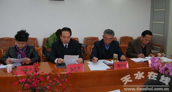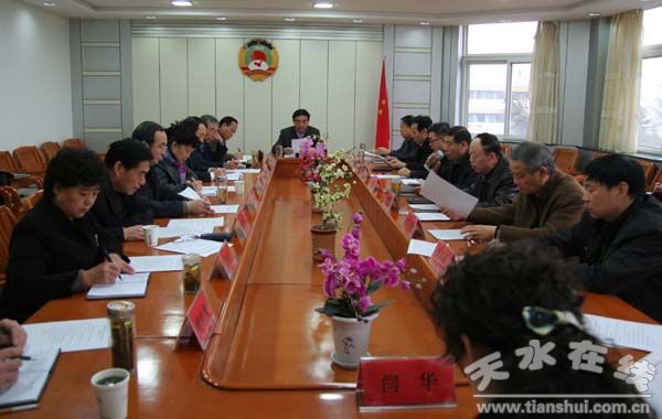 2月16日上午,天水市政协召开五届十四次主席会议。市政协主席冯沙驼主持会议。市政协副主席白朝德、王钦锡、陶元德、魏来全、王凤保、安志宏、杨发元、何道华,秘书长冯进福参加了会议。