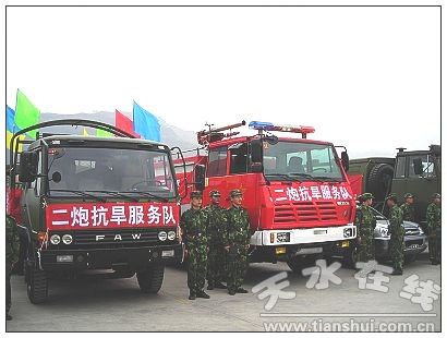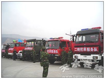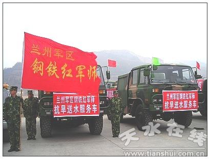 去年入冬以来,天水降水严重偏少,气温持续偏高,有90多天未发生有效降雨,全市普遍受旱,甘谷县和武山县旱情尤为严重,全市耕地受旱面积已达380多万亩。山区人畜饮水困难,据了解,天水有14.4万人、4.58万头大牲畜严重缺水。天水市委、市政府紧急动员抗旱保春耕,及时启动了二级抗旱响应并投入专款170多万元用于抗旱工作,同时,把解决人畜饮水问题放在抗旱工作的首位。当地驻军得知旱情后主动请缨,驻军某部政委陈浩说:“我们驻在天水,就应该想人民所想,急人民所急,驻军有责任、有义务支援饮水极度困难地方的群众,发扬抗震救灾的伟大精神,打好这场抗旱救灾战役。”