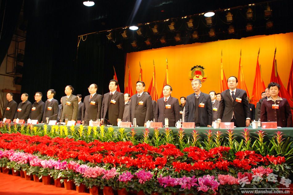 (天水市委书记、市人大常委会主任张景辉,天水市委副书记、市长李文卿,天水市政协主席冯沙驼出席会议)