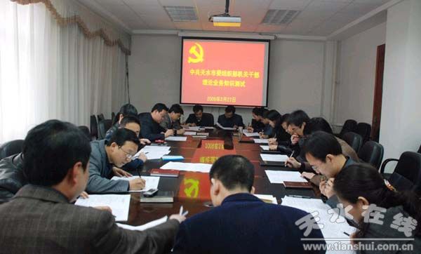 3月27日下午,是市委组织部政治理论学习例会时间,与以往不同的是,部会议室里却安静异常,机关20多名党员干部正在埋头伏案,认真填写一张张“理论业务知识测试卷”。一个小时后,率先“交卷”的小甄对记者说:“个别理论和业务知识在平时学习时难免似是而非,这样一考,好多东西才明晰,也迫使自己养成勤学勤思的习惯。”