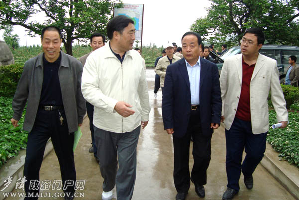 检查组在南山万亩花牛苹果基地视察节水灌溉工程