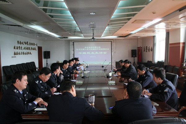5月19日上午,天水市公安局交警支队领导班子召开学习实践活动专题民主生活会,支队党总支班子全体成员参加了会议。市委学习实践活动领导小组第七督导组组长刘谦、副组长王怀胜、市公安局纪检书记毛建明到会指导,支队民警代表纪检科长吴文麒、办公室主任李多江、机动大队教导员柴振虎及支队学习实践活动领导小组办公室工作人员列席了会议。会议由市公安局副局长、交警支队长、党总支书记霍秦生主持。
