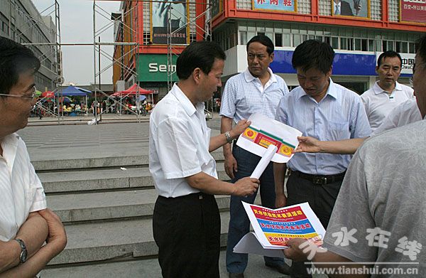 在市龙城广场督查民间民俗文化表演和伏羲武术表演筹备情况