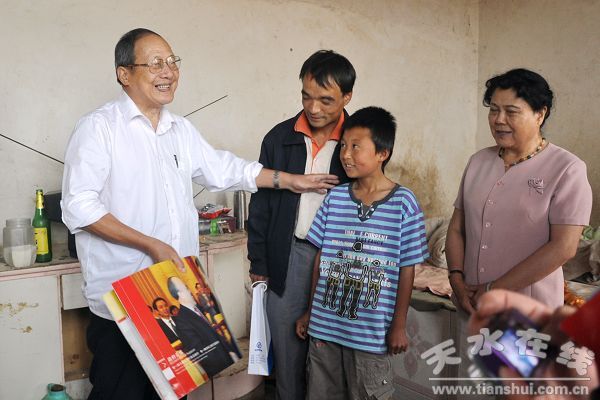 7月8日,丝丝夏雨,缕缕清风,经历了数日酷热天气的我市迎来了一丝难得的清凉。当天上午,浙江省万向集团“四个一万”工程考察团王建、莫东美在省慈善总会副会长吴国英及我市有关部门负责同志的陪同下,分别到秦州区皂郊镇、中梁乡残疾儿童及特困生家中慰问考察,送去集团对困难家庭的关爱之情。