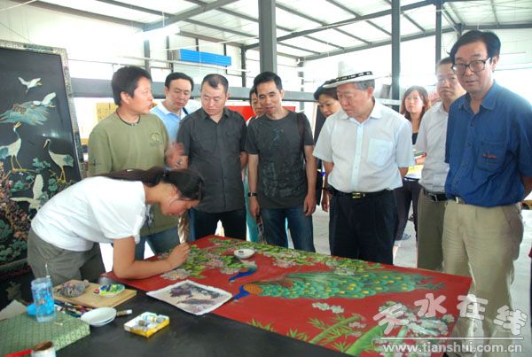 8月7日,上海市普陀区人大常委会主任叶维华一行在天水市参观考察了东十里工业园飞天雕漆厂、昌盛食品有限公司,二十里铺工业园电传所、社棠工业园等单位,了解天水市工业经济发展情况。