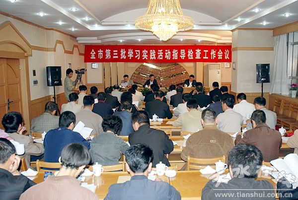 9月11日,全市第三批学习实践活动指导检查工作会议在天水迎宾馆召开。天水市委常委、组织部长、市委学习实践活动领导小组副组长杨继军,市委巡回检查组全体成员,各县区委组织部长,市委统战部、市教育局、市卫生局3个行业指导小组,市委学习实践活动领导小组办公室负责人等出席了会议。会上还宣读了市委巡回检查组和行业指导小组分组名单。