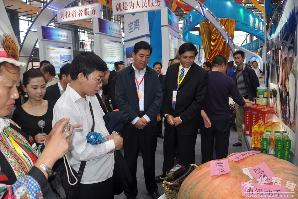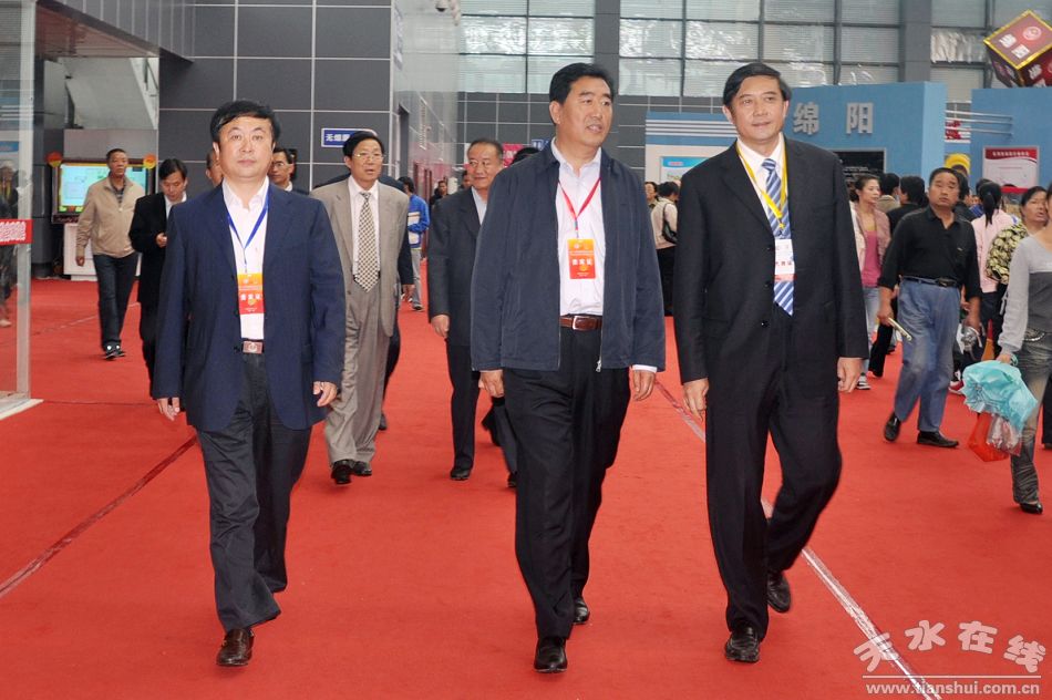 天水在线宝鸡报道 9月19日下午,天水市委书记、市人大常委会主任、天水党政代表团团长张景辉,市委常委、秘书长蒋晓强,市人大常委会副主任任佰年、副市长赵卫东一行前往宝鸡会展中心主展馆,视察了天水展区。