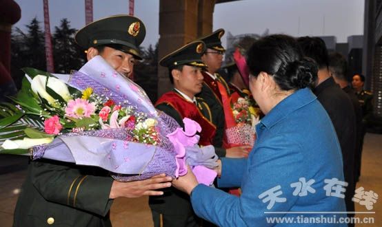 在欢迎仪式上,天水市副市长萧菡首先代表市委、市人大、市政府、市政协和全市人民向获得殊荣的单位、个人表示祝贺和敬意。萧菡说:天水消防部队在各类重特大事故抢险救援和支持地方经济社会发展建设中牢记宗旨,不辱使命,攻坚克难,战无不胜,为天水经济和各项事业发展、保障人民生命财产安全做出了巨大贡献。此次在全省“双十佳”评选中脱颖而出,用实际行动和良好业绩证明天水消防部队和消防官兵无愧“忠诚可靠、服务人民、竭诚奉献”的威武文明之师。萧菡希望当选“双十佳”的单位和个人要珍惜荣誉,再接再励,爱岗敬业,再创辉煌。