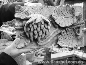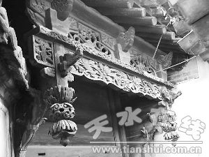 据了解,天水自古以来气候温润多雨,建筑多采用防雨性能比较好、结实耐久的筒砖、板瓦来封顶,从而有效地保护梁、柱、屋顶木等构件。屋顶上均饰以脊饰、瓦当等,正脊多捏为各式花卉水果等悬雕造型。