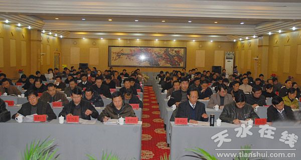 2009年11月20日,全市机关党的建设工作会议在市迎宾馆召开。天水市委副书记张应华,市委常委、组织部部长杨继军,市委常委、秘书长蒋晓强出席会议。会议要求,全市各级机关党组织要以党的十七届四中全会精神为指导,用改革创新精神全面推进机关党的建设,不断提高机关党组织的创造力、凝聚力和战斗力,为全市改革发展稳定提供坚强的组织保证。