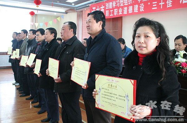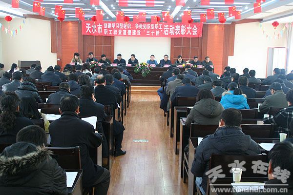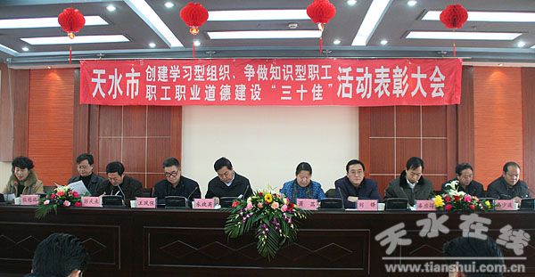 12月23日,天水市召开创建学习型组织、争做学习型职工、职工职业道德建设“三十佳”活动表彰大会,天水市人大常委会副主任朱政英、副市长萧菡、市政协副主席王凤保出席会议并为受表彰先进集体和先进个人颁奖。
