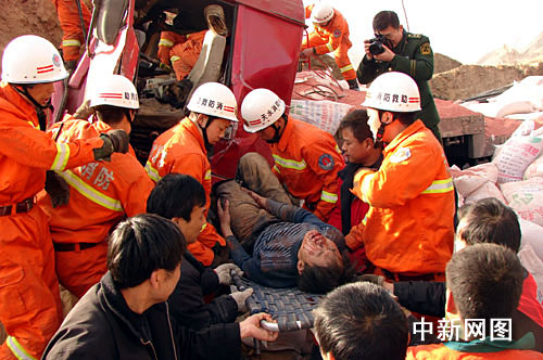 中新网兰州1月27日电 (刘健 巩刚)1月27日下午,甘肃天水消防官兵成功营救两名车祸重伤受困群众。