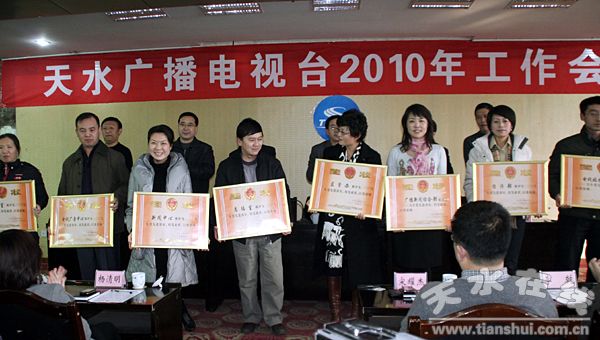 天水广播电视台台长、总编辑江宁对全台2009年的工作作了总结。会议由天水广播电视台党委书记谢为民主持。会上还表彰了2009年度8个先进部室及23名先进个人。