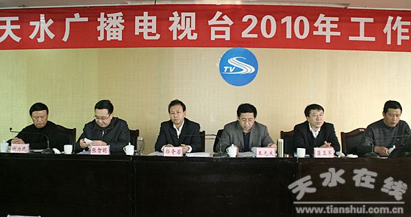 1月29日下午,天水广播电视台召开2010年工作会议。市委常委、宣传部长王光庆,市委常委、副市长郭奇若,市委办公室副主任崔玉军,市广电局党委书记、局长张智明出席了大会。