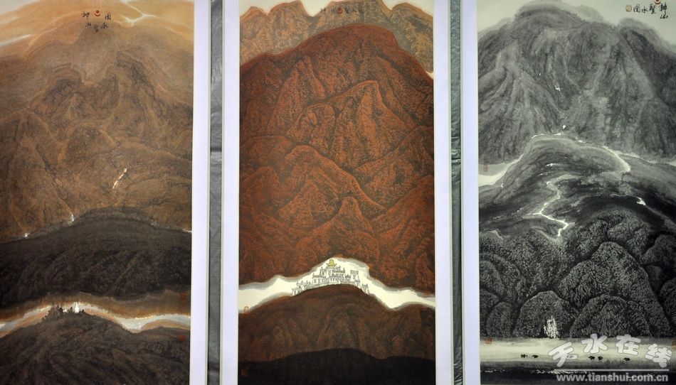 刘万年西藏山水画《神山圣水图》在天水首展(图)