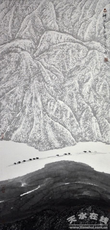刘万年西藏山水画《神山圣水图》在天水首展(图)