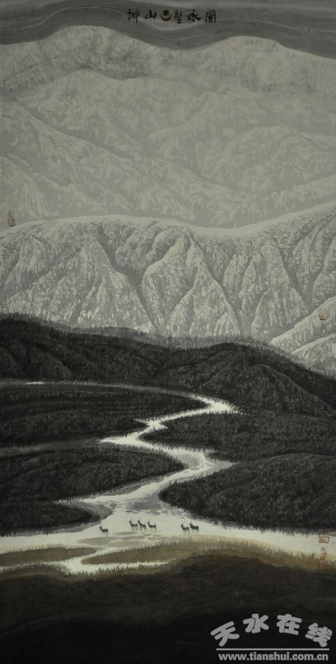刘万年西藏山水画《神山圣水图》在天水首展(图)