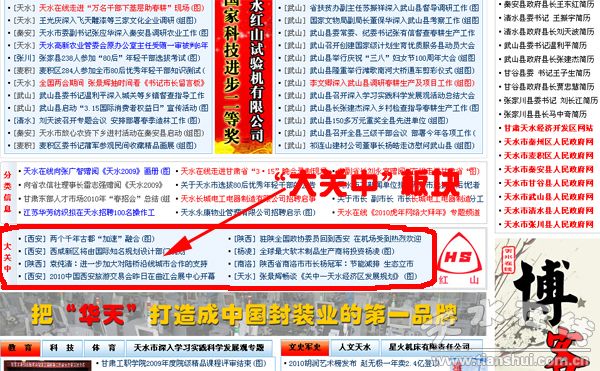 天水在线是“全国十大城市门户网站”之一,在去年开通“关中—天水经济区”频道的基础上,近日又在首页开辟了《大关中》板块,在第一时间将有关关中—天水经济区建设的政策措施、新闻动态等进行转载,这既为宣传和推介天水提供了一个新的窗口,也为各级领导干部和社会各界了解经济区建设进展情况创造了一个良好平台。全市各级各部门和广大干部职工要经常关注《大关中》板块,及时了解经济区各方动态,学习借鉴有益经验,加强区域协作,扩大对外开放,积极推动关中—天水经济区建设,努力实现天水经济社会跨越式科学发展。