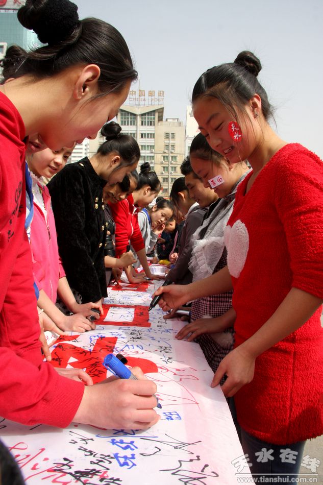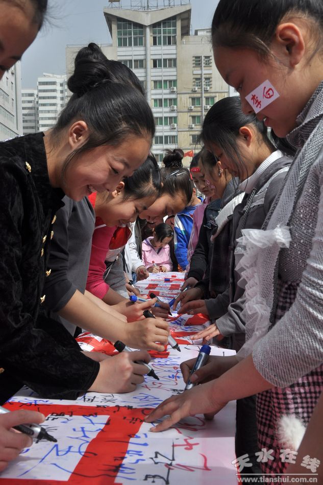 签名结束后,参加签名活动的部分网友携带由上千人签名的条幅先后在天水市龙城广场、秦州区中华西路步行街、天水孔庙、天水古巷、南宅子、天水赵家祠堂、伏羲庙、诸葛军垒、南郭寺、李广墓、藉河风情线等进行了展示。
