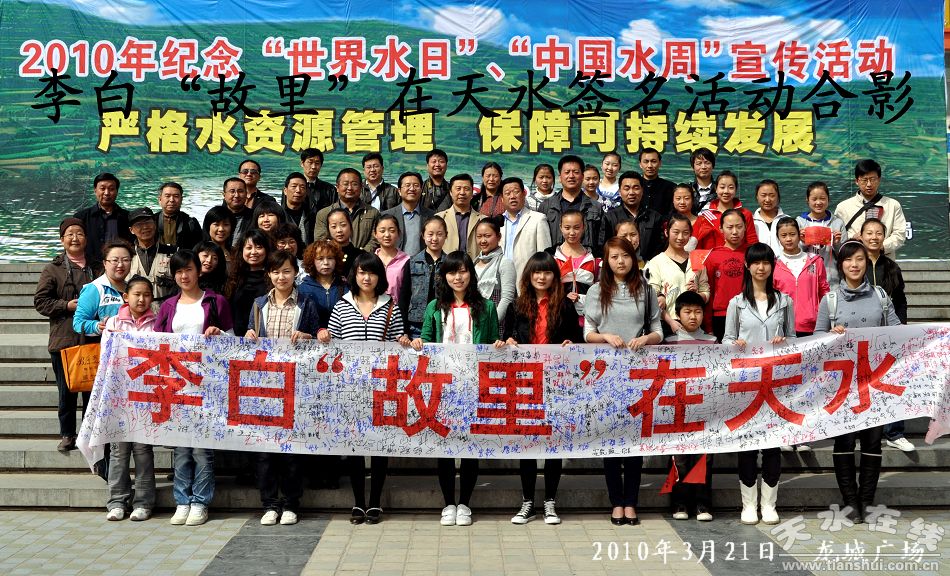 3月21日上午,由天水在线、天水师范学院团委、甘肃艺校天水分校联合倡议发起,天水广大网友积极参加的“李白故里在天水”正名活动在天水市龙城广场激情登场。