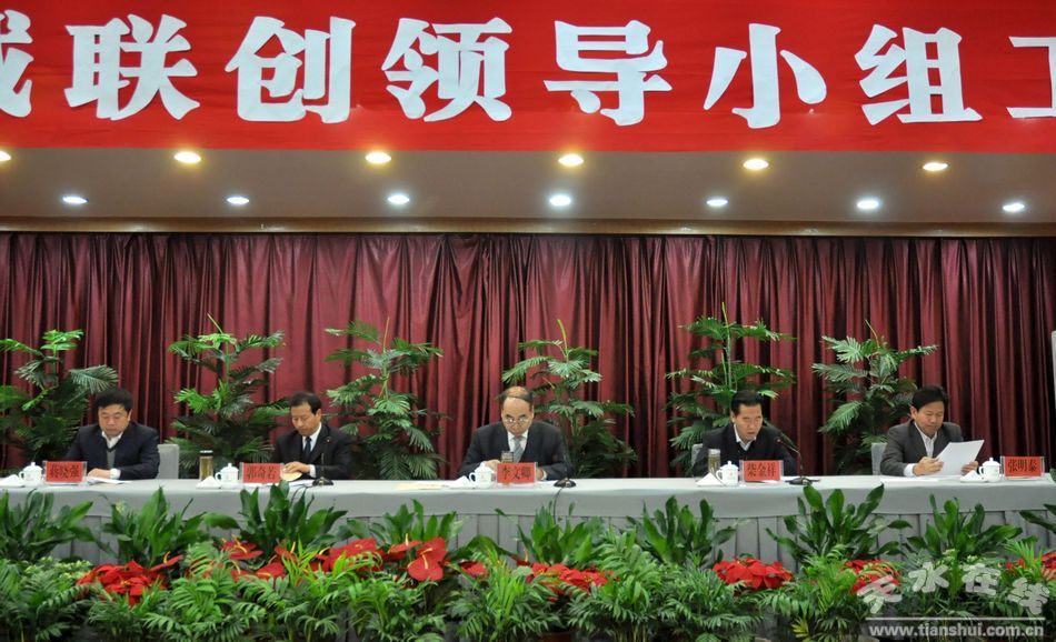 市委副书记、市长、市“三城联创”工作领导小组组长李文卿,市委常委、常务副市长、市“三城联创”工作领导小组副组长柴金祥,市委常委、副市长、市“三城联创”工作领导小组副组长郭奇若,市委常委、秦州区委书记、市“三城联创”工作领导小组副组长张明泰,市委常委、秘书长、市“三城联创”工作领导小组副组长蒋晓强出席会议。