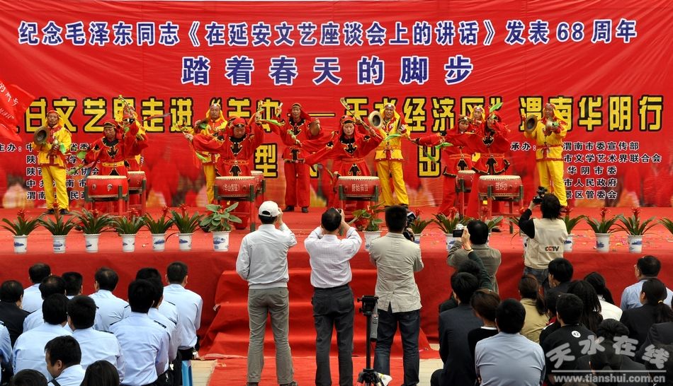 5月18日,陕甘文艺界走进“关中——天水经济区”采风慰问团首场大型文艺慰问演出在渭南市华阴市西岳庙广场举行。来自陕西、甘肃的艺术家们通过相声、小品、歌舞、秦腔等,用精湛的技艺和美妙的歌声抒发了他们对伟大祖国和美好时代的赞美之情,让观众们享受了一顿丰盛的文艺大餐,博得了现场群众的阵阵掌声。