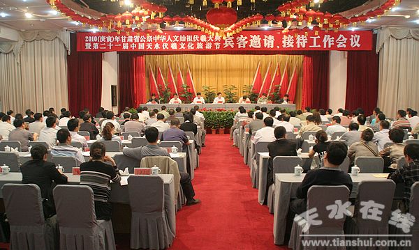 6月4日,天水市召开2010年甘肃省公祭中华人文始祖伏羲大典暨第二十一届中国天水伏羲文化旅游节宾客邀请、接待工作会议,专门对这两项工作进行了具体部署安排。市委常委、市委秘书长蒋晓强在讲话中强调,各接待部要进一步靠实责任,强化措施,力求以周密的安排、过细的工作、优良的服务让宾客满意,确保节会圆满成功。