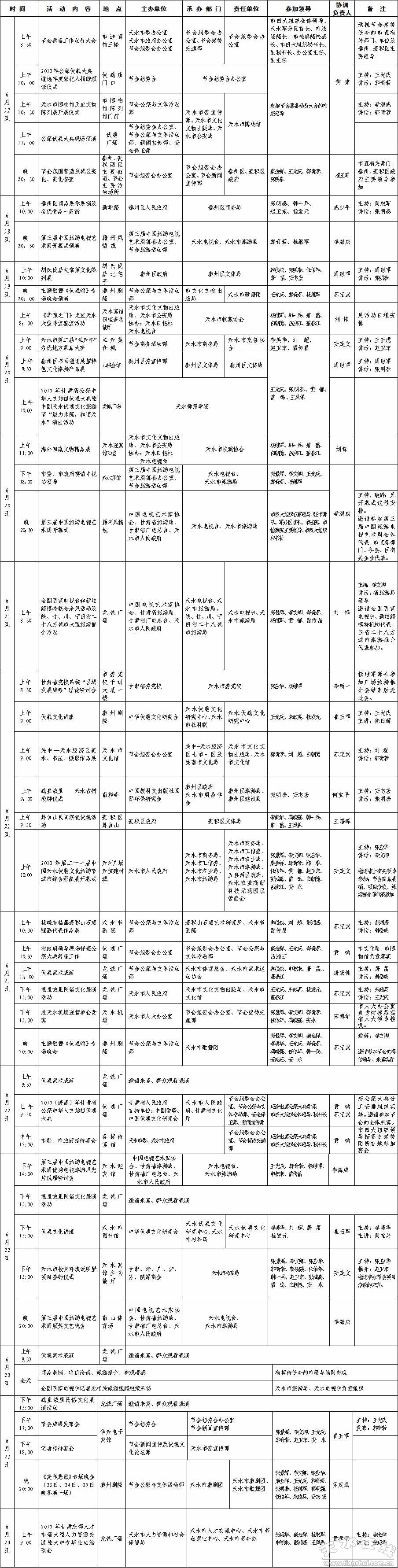 2010伏羲大典暨天水伏羲文化旅游节各项活动安排表