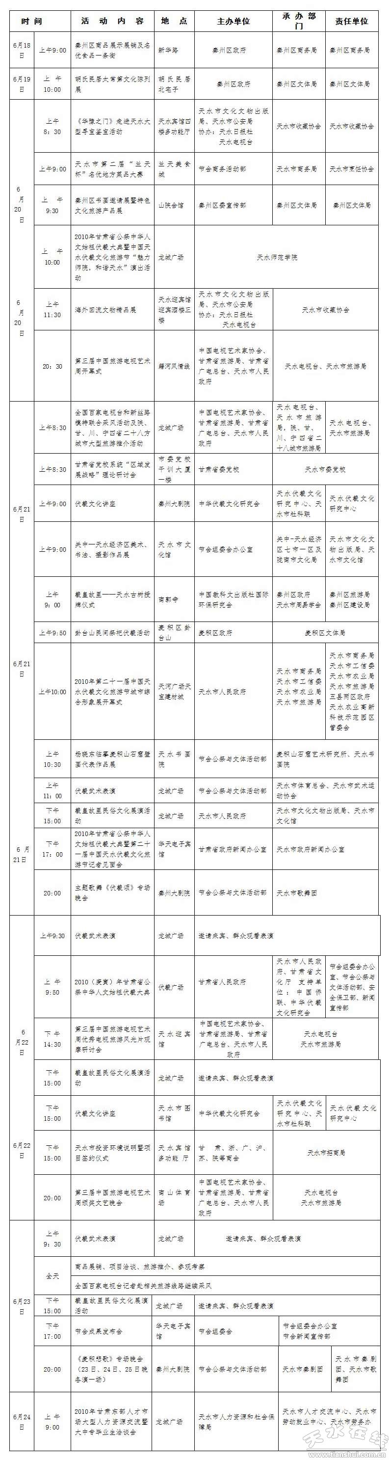 2010伏羲大典暨天水伏羲文化旅游节各项活动安排表