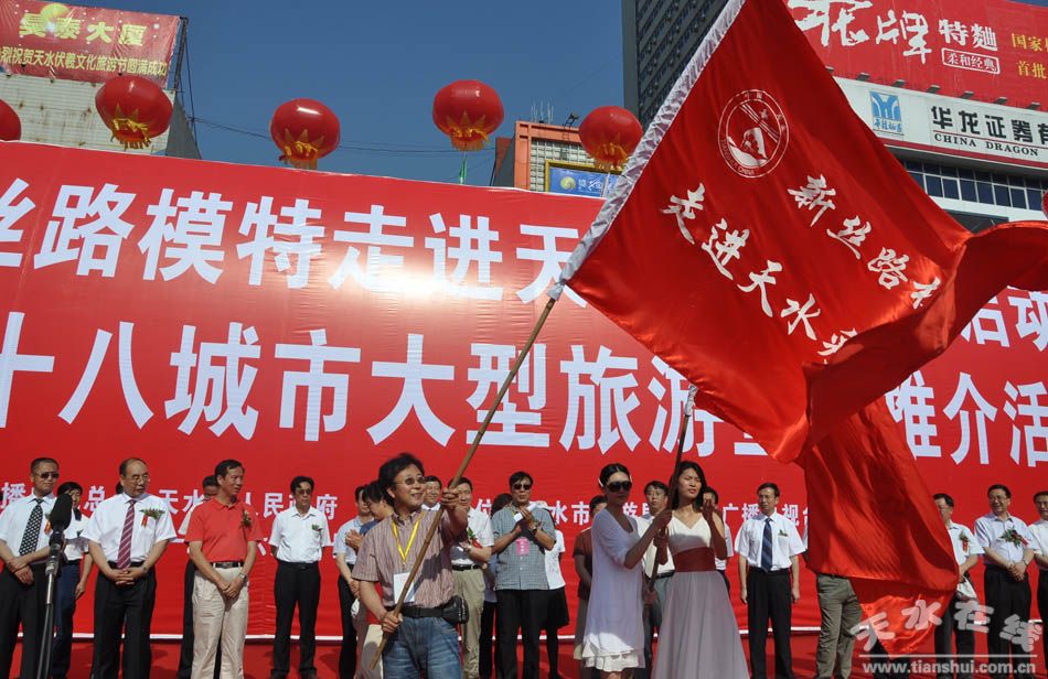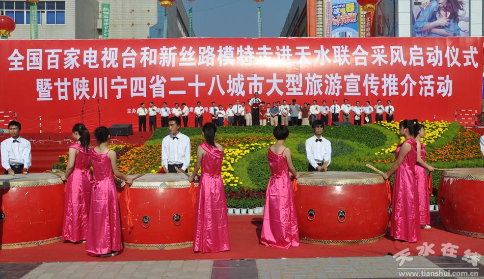 6月21日上午,全国百家电视台和新丝路模特走进天水联合采风活动暨甘陕川宁四省二十八城市大型旅游宣传推介活动启动仪式在天水市龙城广场隆重举行。