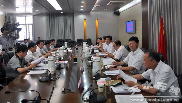 7月19日,天水市委书记、市人大常委会主任张景辉主持召开市委常委会议,研究深入推进“社会矛盾化解、社会管理创新、公正廉洁执法”三项重点工作实施等事宜,听取有关工作情况汇报。