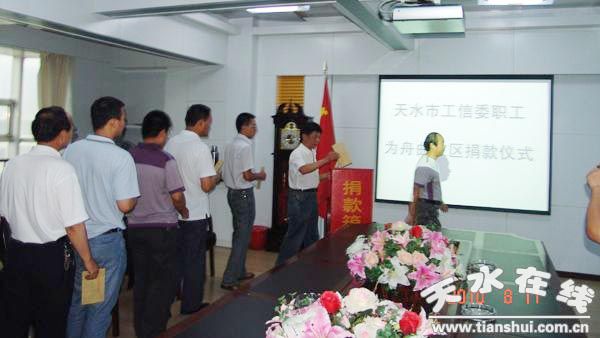 我省甘南藏族自治州舟曲县突发特大泥石流灾害之后,灾情牵动着天水市工信委机关干部的心,委党委及时发出了捐款倡议,组织党员干部为灾区捐款,广大干部发扬“一方有难、八方支援”的传统美德,纷纷慷慨解囊,踊跃捐款,70名干部捐款8500元,体现了与灾区人民心连心,无私奉献,共克时艰的精神。