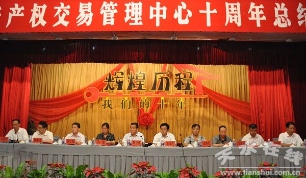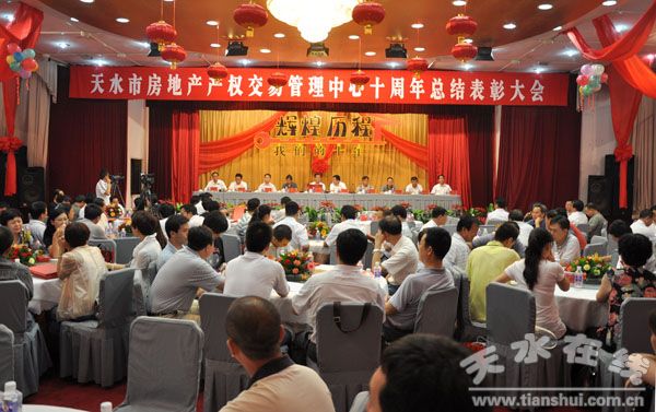 8月18日,天水市房地产产权交易管理中心十周年总结表彰大会在迎宾馆隆重召开。 天水市委常委、常务副市长柴金祥,市委常委、宣传部长王光庆,市人大常委会副主任黄郁,市政协副主席冯进福出席会议。
