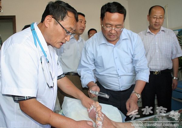 韩岱成看望参加娘娘坝抗洪抢险住院战士