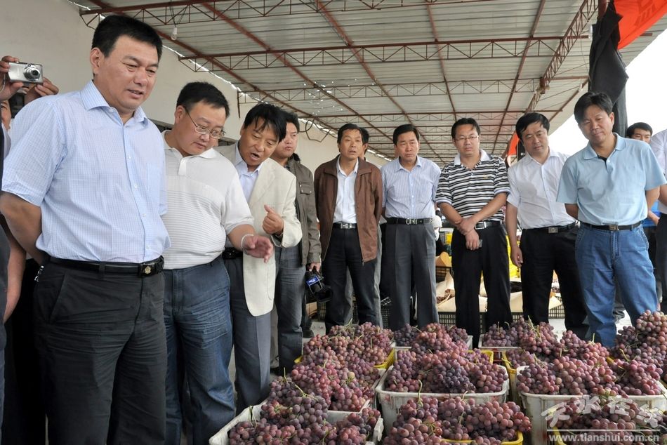 在七里镇葡萄长廊考察敦煌市葡萄产业发展