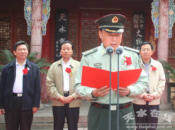 天水市委常委、政法委书记韩岱成,市委常委、宣传部长王光庆,市委常委、副市长郭奇若,市委常委、军分区司令员郑黎,市长助理、市公安局局长吕淙江及市直有关单位和驻军领导出席摄影展。