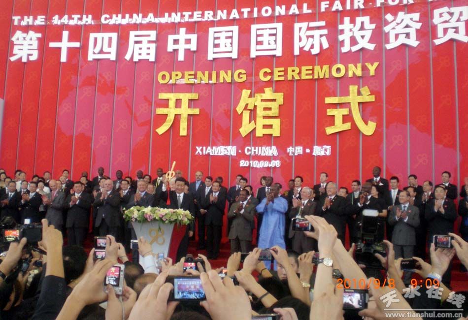 第十四届中国国际投资贸易洽谈会9月8日在厦门国际会展中心开幕,中国国家副主席习近平开启投洽会金钥匙。天水市副市长赵卫东带领开发区、商务局、招商局和秦州、麦积、张家川、甘谷等县区相关负责人参会。
