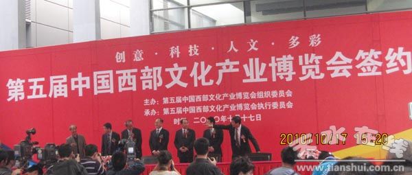 10月17日,天水市委常委、宣传部部长王光庆参观第五届西部文化产业博览会并出席签约仪式,期间,王光庆陪同省文化厅副厅长、第五届西部文化产业博览会甘肃代表团副团长王文全参观了天水展厅。