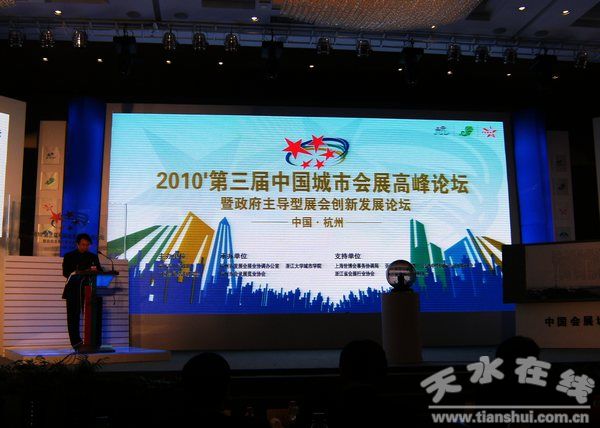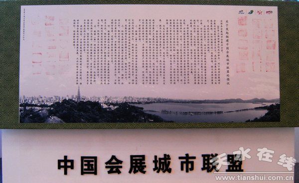 (天水市人民政府节会办公室)日前,在美丽的西子湖畔杭州举行的第三届中国城市会展高峰论坛暨政府主导展会创新发展论坛上,天水市同杭州市签署了发展两市节庆会展业长期合作关系备忘录。同时,同天津、重庆、呼和浩特、哈尔滨、潍坊、南京、武汉等全国28个城市一起在联盟倡议上庄重签字,成立了中国会展城市联盟。