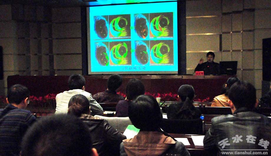 培训班由市一医院副院长王国强主持,副院长马致祥致词,省超声医学工程学会会长、省人民医院超声科主任张学兰,天水市卫生局副局长张春英分别作了重要讲话,各位省内外超声医学界知名专家教授及市一医院超声科主任、主任医师商鸿、副主任医师吴茂林、魏小红等专家、教授分别作了题为《二维应变和斑点追踪》、《乳腺疾病诊断新进展》、《规范化产前超声诊断及风险防范》、《四肢静脉的超声诊断》、《双胎妊娠超声诊断价值》、《肾血管性高血压的超声诊断》、《甲状腺超声诊断》、《急诊超声处理原则》、《胎儿畸形的超声诊断》等专题讲座,与会人员还参观了目前国内外最先进的超声诊断设备。