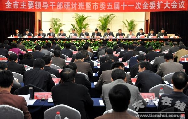市委召开这次全市主要领导干部研讨班暨市委五届十一次全委扩大会议,专题学习贯彻党的十七届五中全会和省委十一届十次全委扩大会议精神,十分及时,很有必要,对于我们把握全会精神,科学谋划“十二五”发展,加快天水经济社会实现跨越式科学发展具有十分重要的意义。张书记代表市委常委会作的工作报告,对今后五年全市经济社会发展做出了总体部署,明确提出了“十二五”时期天水经济社会发展的奋斗目标。当前,我市正处于加快发展的关键时期,全市人大代表及人大机关要自觉在思想和行动上与市委保持高度一致,坚定不移地贯彻落实市委“十二五”时期的战略部署,把学习贯彻党的十七届五中全会和这次全委扩大会议精神作为今后一个时期的中心任务,认真履行宪法和法律赋予的职责,找准人大工作的着力点,推动全市经济社会跨越式科学发展。