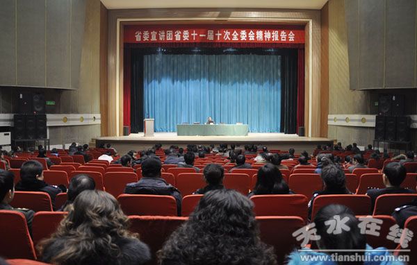 12月23日,省委宣讲团在秦州剧院作了一场省委十一届十次全委扩大会议精神宣讲报告会。