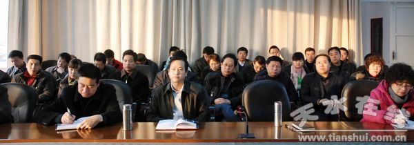 市委常委、宣传部长王光庆指出,市委五届十二次全委(扩大)会议暨全市经济工作会议,全面总结了今年及“十一五”时期天水市经济社会发展取得的成就,深入分析了当前的经济形势,明确提出了明年经济工作的总体要求和重点任务,谋划了未来五年全市经济社会发展大计,对天水市今后五年经济社会实现跨越式科学发展具有十分重要的意义。全市各宣传思想文化部门要认真学习贯彻十七届五中全会精神和市委五届十二次全委(扩大)会议暨全市经济工作会议精神,紧紧围绕经济发展这一目标,积极谋划好明年的工作,丰富载体,创新形式,为全市“十二五”规划实施开好头、起好步奠定坚实的宣传思想文化基础。同时,要继续加强自身建设,提高思想政治素质和工作能力,培养一支政治强、业务精、纪律严、作风正的宣传思想工作队伍。