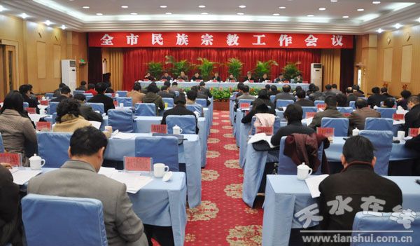 3月2日,天水市召开民族宗教工作会议,传达贯彻全省民族宗教工作会议精神,回顾总结2010年的民族宗教工作,分析当前民族、宗教工作面临的形势,安排部署今年及今后一段时间全市的民族、宗教工作任务。
