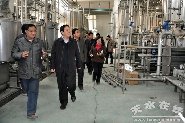 杨维俊一行参观了天水娃哈哈饮料有限公司超净热灌装生产线建设情况,详细了解了项目建设有关情况,就项目建设中存在的困难和问题,进行了现场协调。