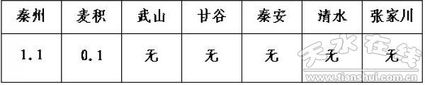 受高空冷平流和局地热对流影响,8日夜间9时前后秦州、麦积出现今年首场雷雨天气,秦州区雨量1.1毫米,麦积区0.1毫米。其余各县没有雨量。